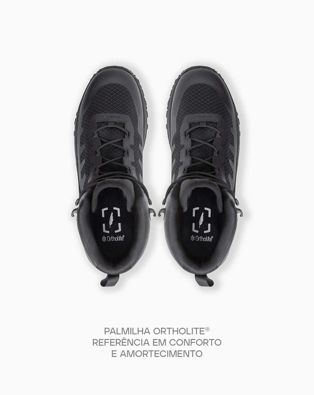A performance de conforto continua garantida com o uso da renomada Palmilha Ortholite®, referência mundial em durabilidade, respirabilidade e suporte anatômico, além de utilizada por grandes marcas de calçados de performance.