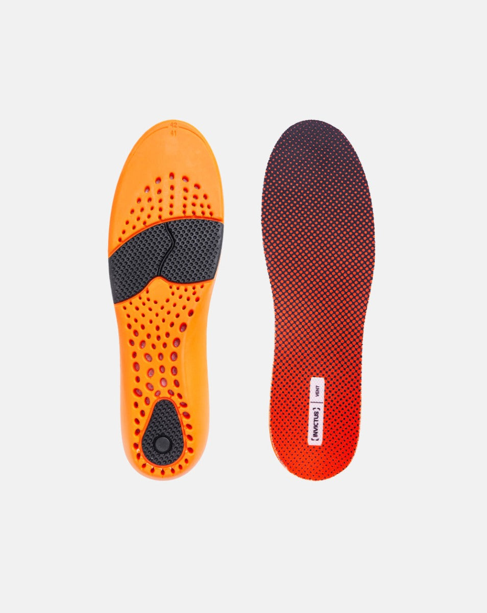 Graças a seu design anatômico, a Palmilha INVICTUS Vent possui um suporte do calcanhar em forma de U, que alinha o calcanhar e melhora a estabilidade da pisada durante o uso. O seu corpo possui orifícios que promovem maior respirabilidade e também auxiliam na troca de calor, viabilizando um maior conforto térmico e deixando o seu pé sempre seco. Ela também detém tecido mesh, que facilita o calce pois promove o deslizamento do pé na palmilha.